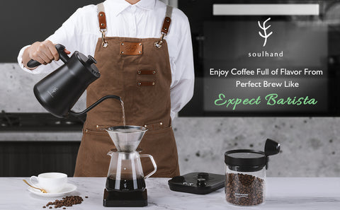 When brewing your pour-over coffee at home, you need an electric gooseneck kettle that could accurately control the temperature, a gooseneck spout, and a timer to ensure precise pouring, that is what Soulhand gooseneck electric kettle is designed for, it has all features that needed by a home barista.